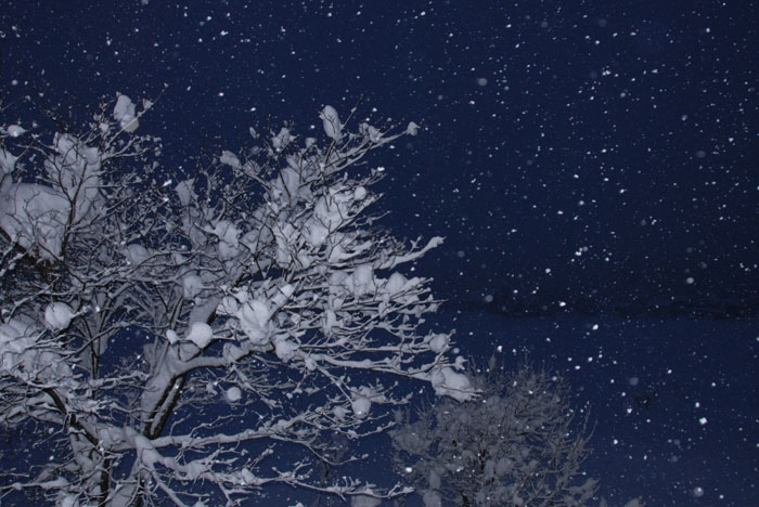 激しい雪の中 次第に空が明るくなってくる。時折降る雪もそんなに冷たくない。